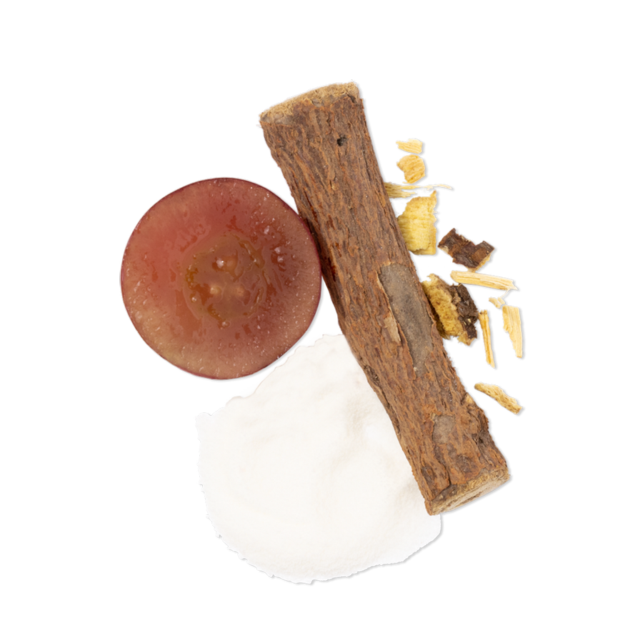 The combination of grape seed polyphenols, grape viniferin, licorice root extract, and vitamin C work synergistically to correct hyperpigmentation. This is achieved by regulating melanin production through inhibiting the tyrosinase enzyme, which produces melanin, the pigment in our skin responsible for dark spots and hyperpigmentation.