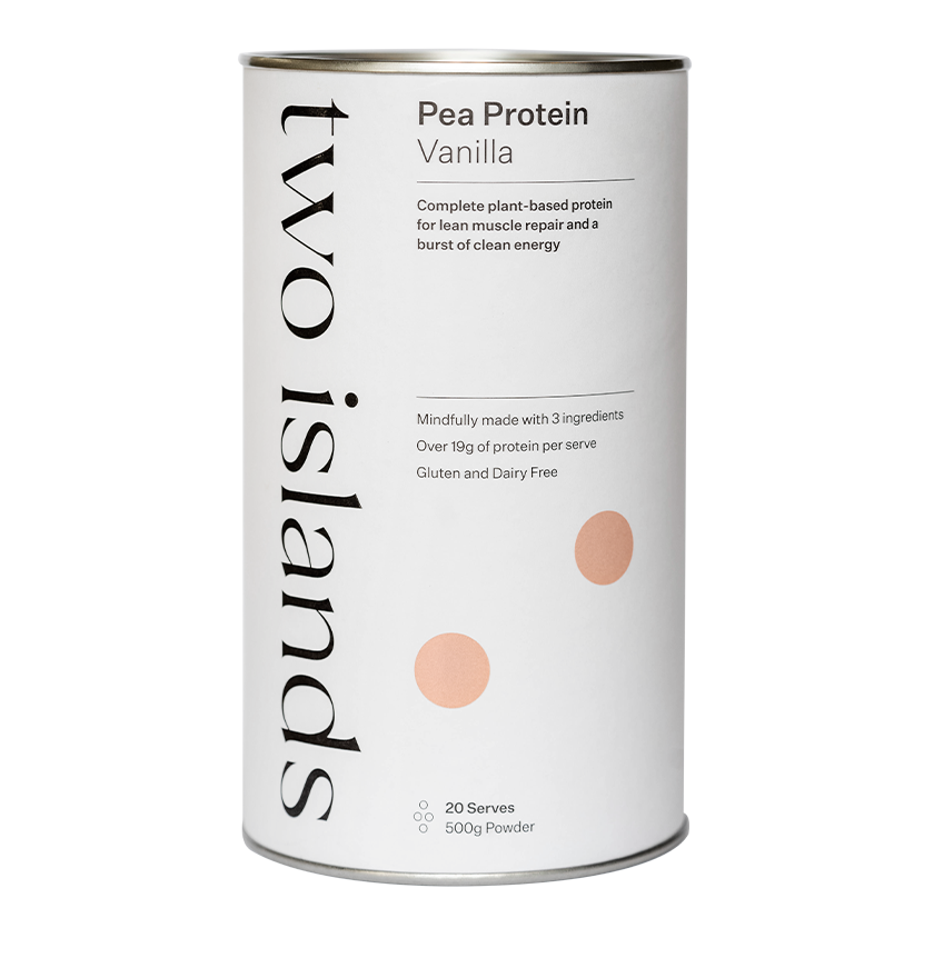 Our Two Islands Pea Protein Powder can be mixed with your milk of choice (cow’s, oat, almond, etc.). It is also great mixed with yoghurt and your smoothie for a post-workout snack.
