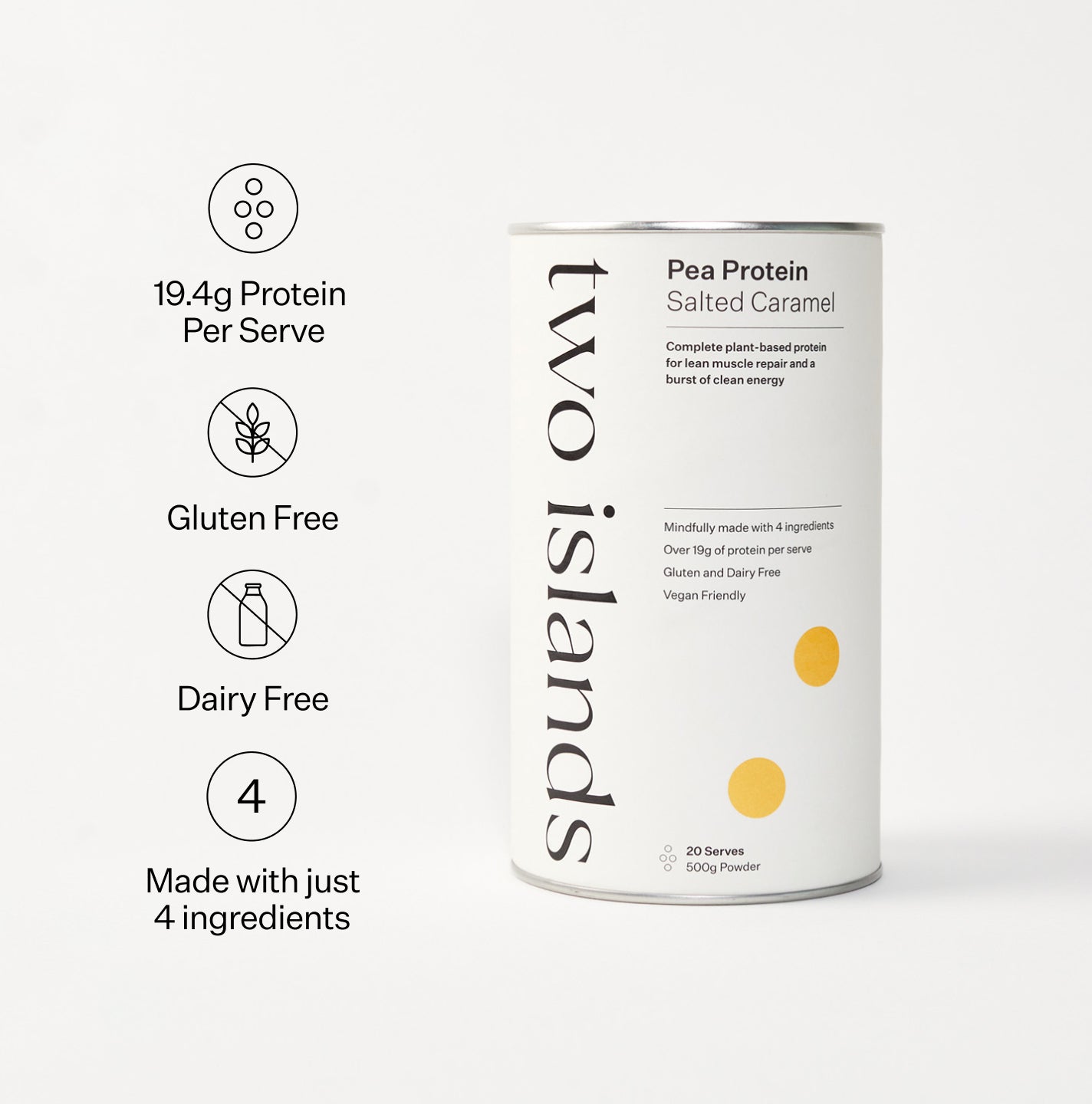 Protein is a macronutrient that is essential for your body and good health. Making up around 15% of our total body weight, protein is found in our skin, hair, nails, cartilage, bones, muscles and organs. Two Islands Pea Protein Powder is vegan friendly and free of dairy and gluten. Great after a workout, added to your favourite baking recipe, in a smoothie or as a snack in water with ice to get you through the afternoon.