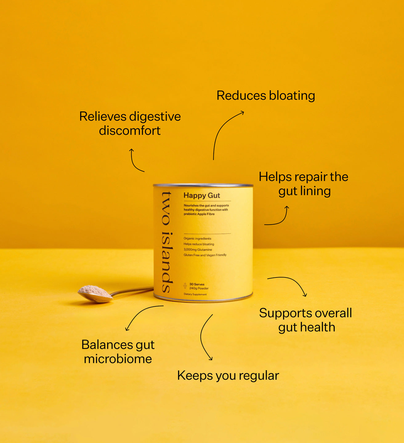 The ingredients in Two Islands Happy Gut will start to nourish and soothe the gut after the first serve. Depending on how compromised your gut flora, digestion and overall gut health is you may notice results in as little as 2 weeks. Even if you do not have any external signs of poor gut health, it is beneficial to include Happy Gut as part of our daily routine to support total body wellbeing. It’s like a multivitamin for your gut!
