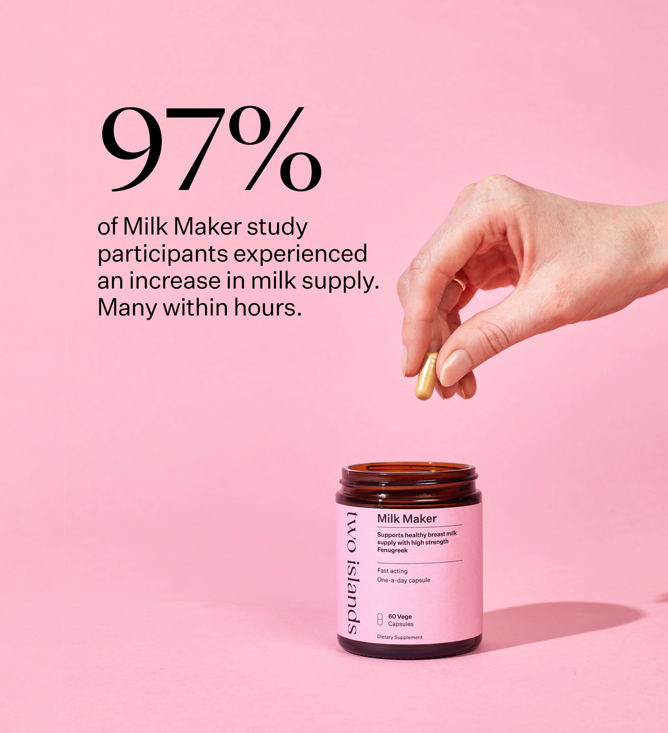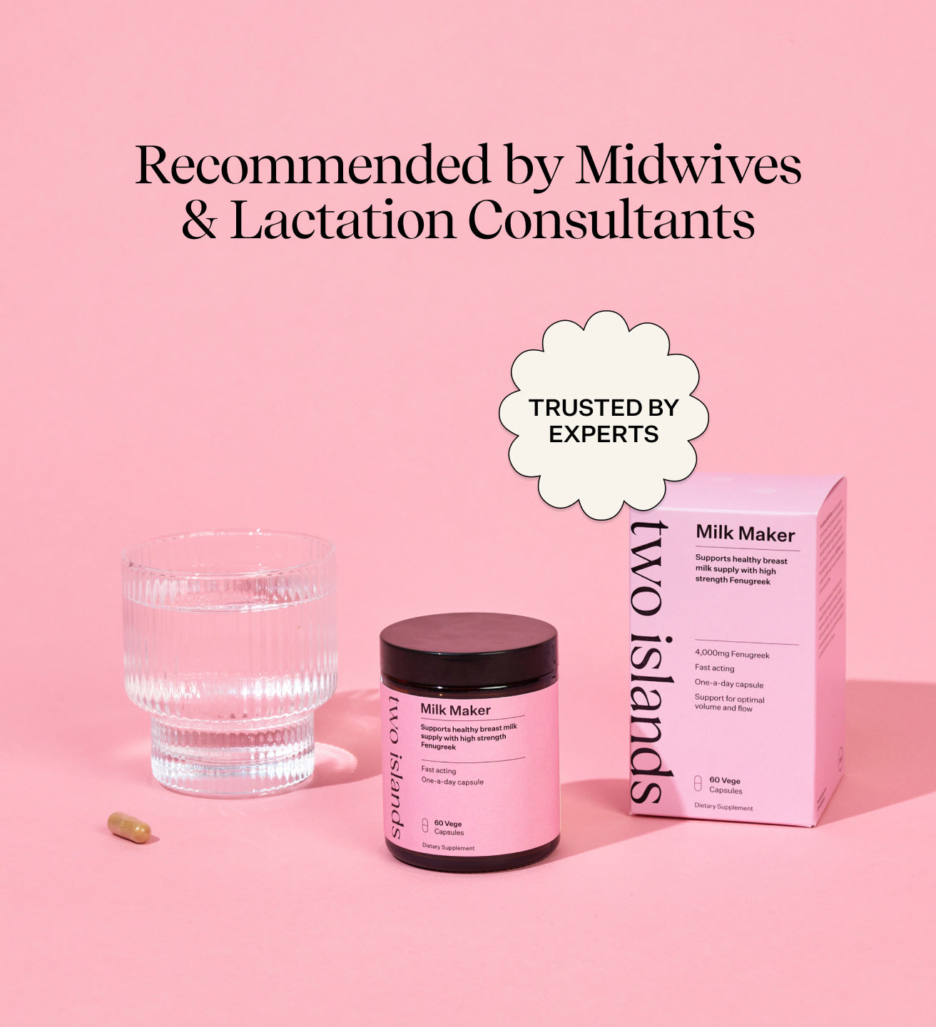 For optimal milk supply, it’s important to stay hydrated and make sure you’re getting enough protein each day too. We suggest pairing Milk Maker with Two Islands Pea Protein for a quick and easy top up of protein when you’re short on time.