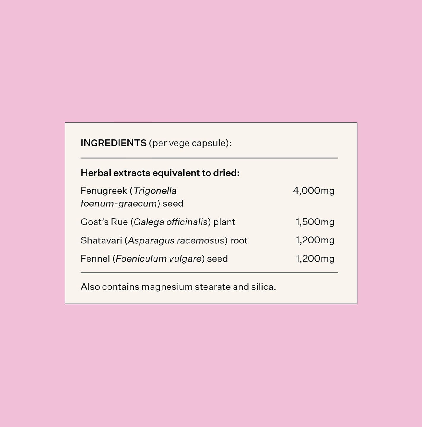 A potent blend of Fenugreek, Fennel, Goat’s Rue and Shatavari work to support optimal milk supply for breastfeeding and pumping mums. Often recommended by lactation consultants, these well-known galactagogue herbs are a natural and effective way to support healthy breast milk volume.
