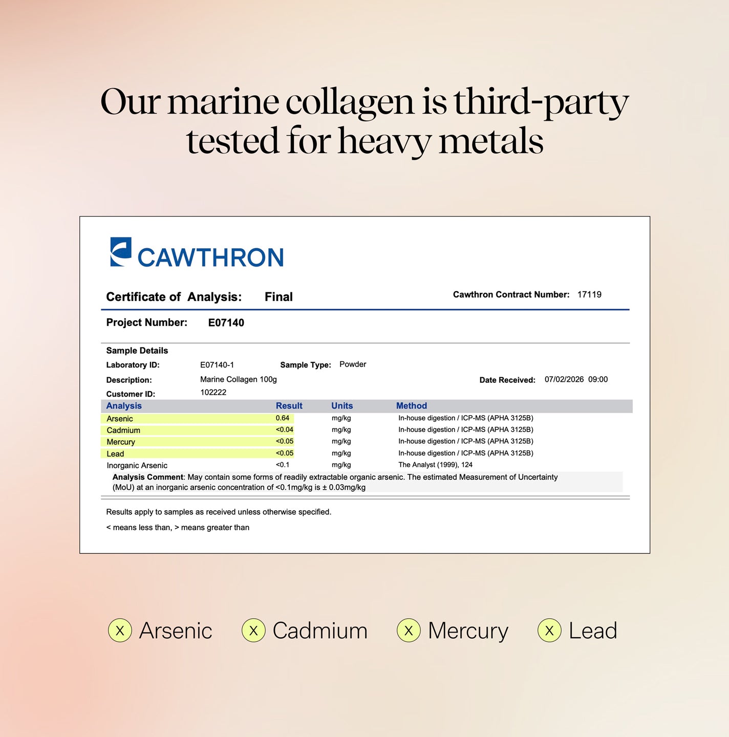 Type I collagen supports the appearance of plump, hydrated skin, strong nails and healthy hair. Also 1.5x better absorbed by the body compared to bovine or porcine derived collagen.